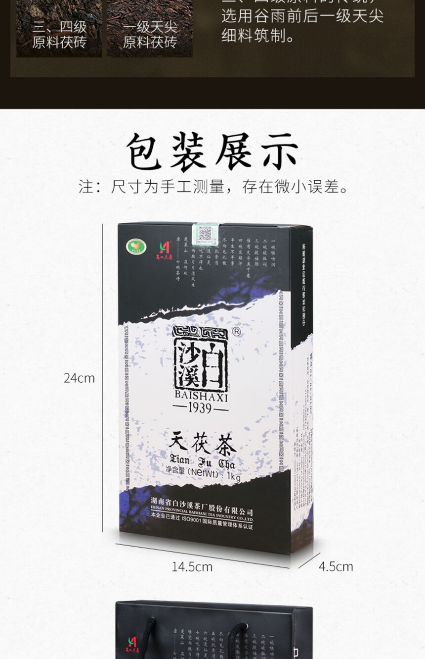 湖南安化黑茶正宗白沙溪金花獲磚茶茶禮茶葉天獲茶1kg