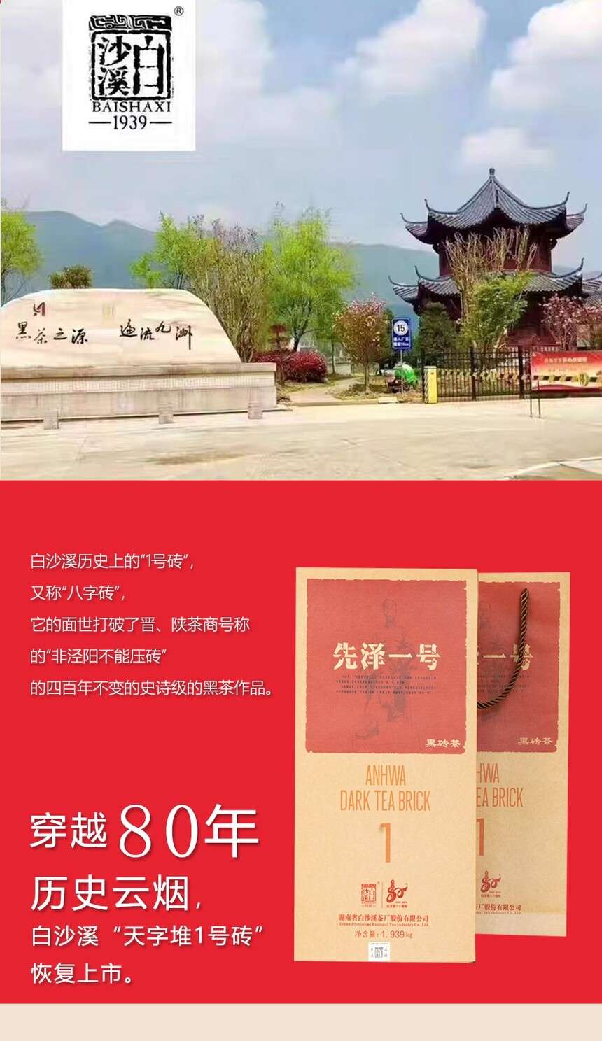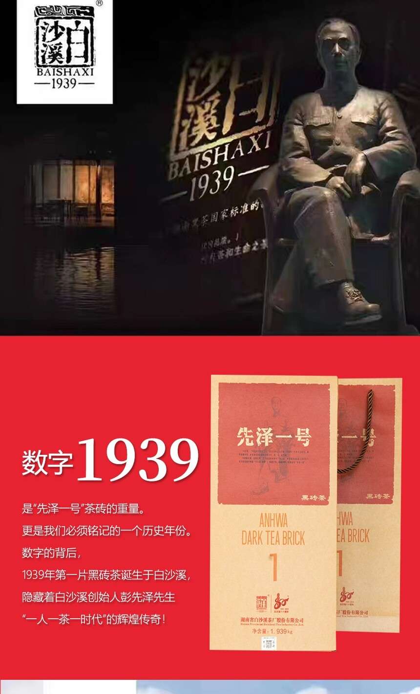 • 湖南安化正宗黑茶白沙溪獲磚先澤一號(hào)黑茶1.939kg盒