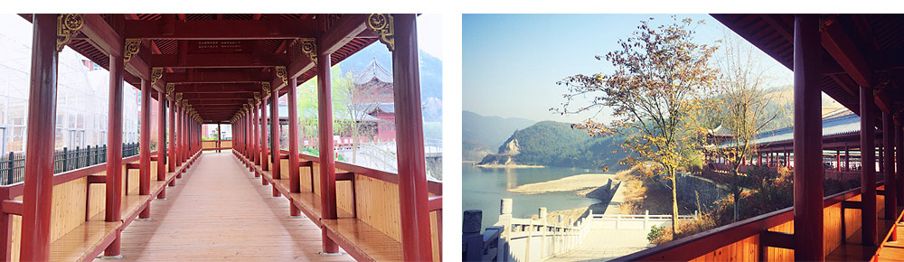 建成于2015年,全長(zhǎng)76米,寓意白沙溪茶廠76周年歷史。長(zhǎng)廊沿河堤而建,仿風(fēng)雨廊橋設(shè)計(jì),紅漆黛瓦,曲折廊回,可坐觀江景或休憩。長(zhǎng)廊內(nèi)雕梁畫棟展示安化黑茶歷史人物故事和詩(shī)詞,營(yíng)造濃厚的文化氛圍。周邊以園林綠化相襯,最適于游客拍照攝影。