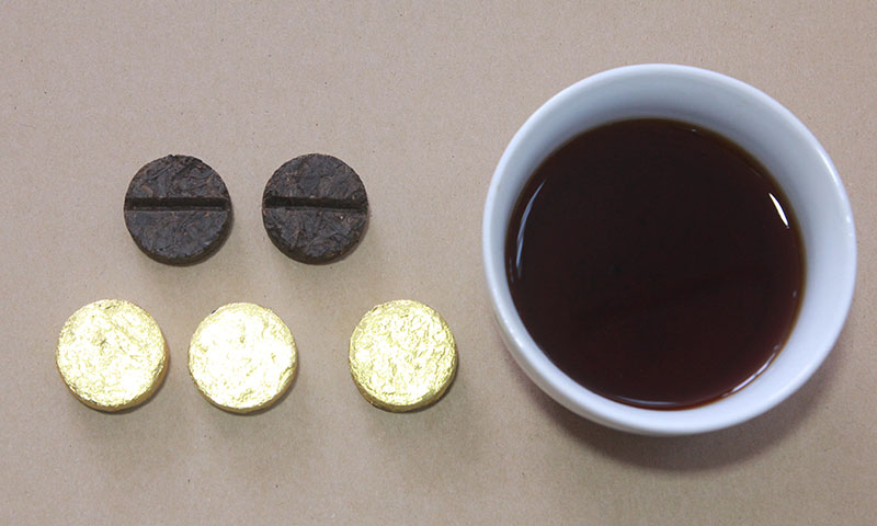 金幣普洱:每顆6—8克,呈圓狀,正面帶有“一”字型壓痕,口感好。