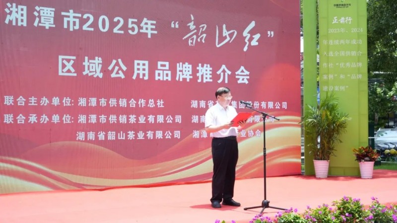 5月30日,湘潭市2025年“韶山紅”區(qū)域公用品牌推介會(huì)暨“韶山紅”品牌運(yùn)營(yíng)中心、集團(tuán)合作茗茶湘潭店開業(yè)儀式在湘潭·供銷時(shí)代隆重舉行。湖南省供銷合作總社黨組成員、理事會(huì)副主任張軍,湘潭市人民政府副市長(zhǎng)陳愛民及市各級(jí)政府和行業(yè)協(xié)會(huì)領(lǐng)導(dǎo)、企業(yè)和經(jīng)營(yíng)業(yè)主代表,湖南省茶業(yè)協(xié)會(huì)會(huì)長(zhǎng)、集團(tuán)黨委書記、董事長(zhǎng)周重旺,湖南農(nóng)大、湖南省茶業(yè)協(xié)會(huì)、茶葉學(xué)會(huì)、茶葉研究所、茶葉品牌建設(shè)促進(jìn)會(huì)、紅茶產(chǎn)業(yè)發(fā)展促進(jìn)會(huì)等相關(guān)院校、協(xié)會(huì)組織的專家、領(lǐng)導(dǎo),集團(tuán)總部及韶山茶業(yè)等相關(guān)企業(yè)負(fù)責(zé)人及新聞媒體共計(jì)300余人出席活動(dòng)。
