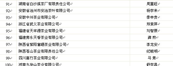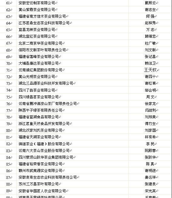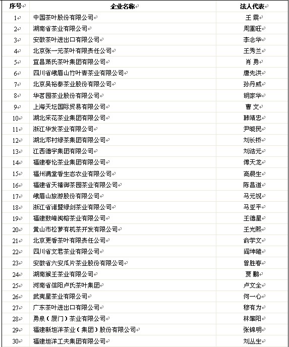 關(guān)于公示2011年中國茶葉行業(yè)百強企業(yè)候選名單的通知