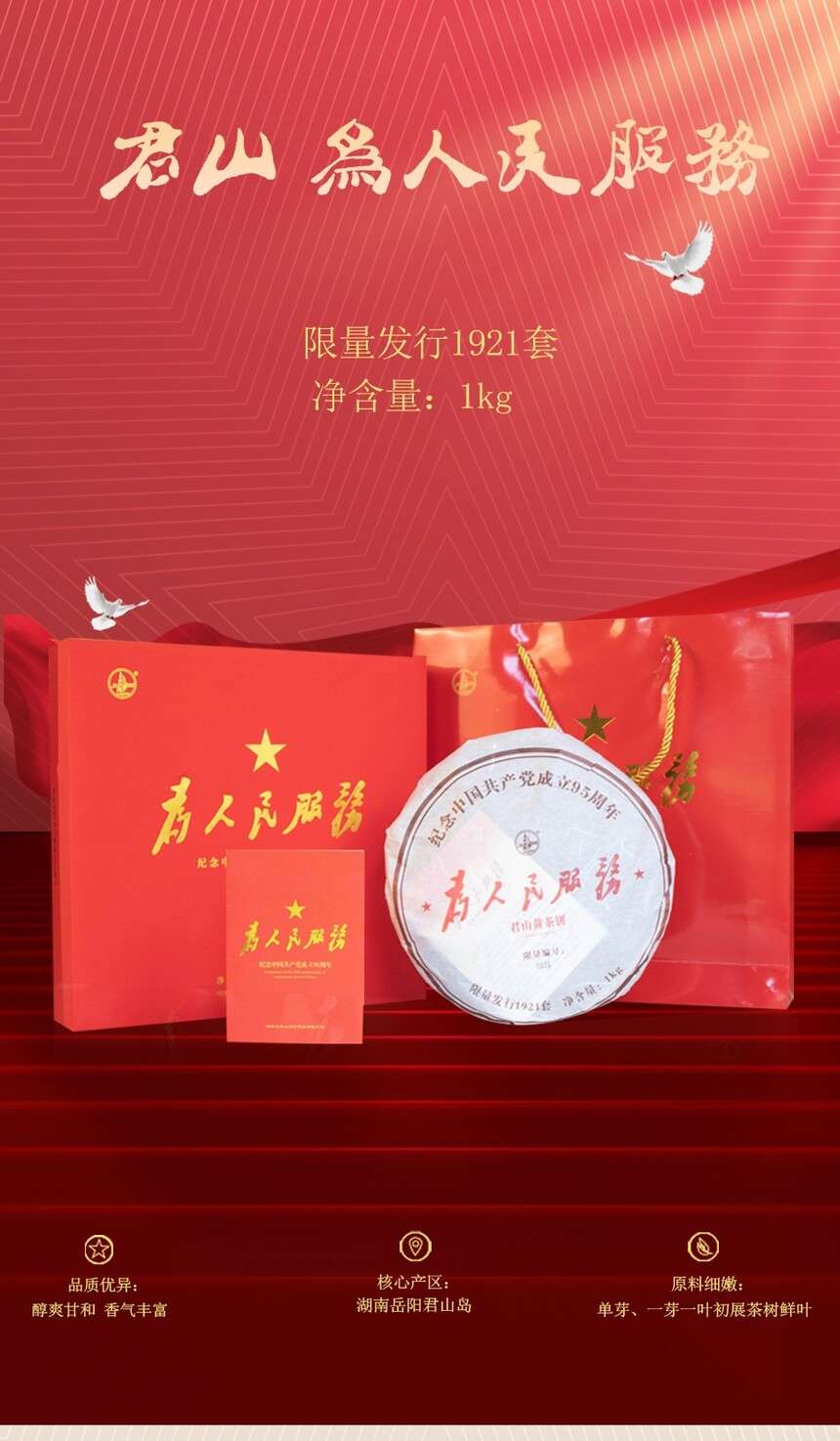 湖南岳陽正宗黃茶君山黃茶緊壓餅為人民服務(wù)1kg