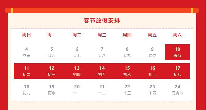 春節(jié)放假安排
