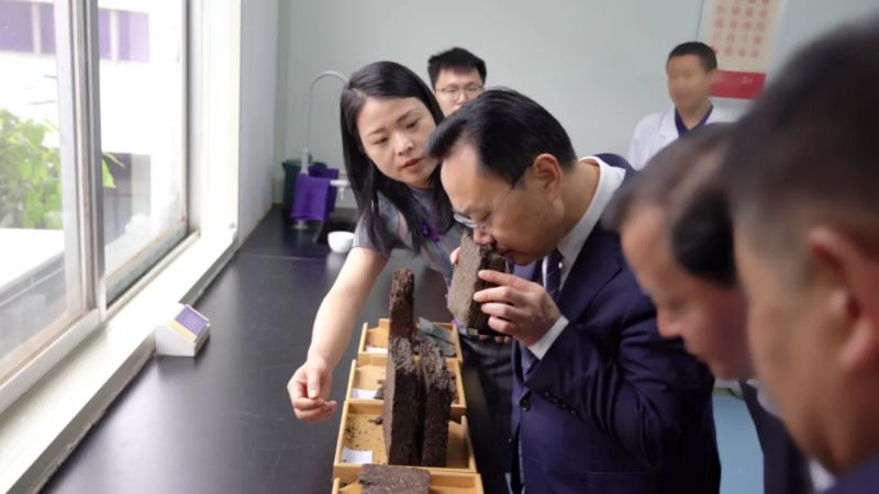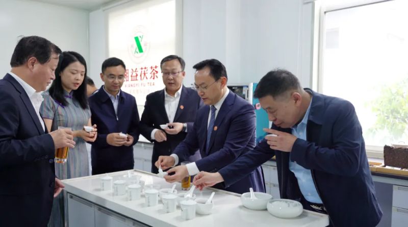 劉仲華院士對湘益茯茶有著深厚的感情,他在茯茶金花的保健功能發(fā)掘與深度研究方面,很多研究標(biāo)本都是湘益茯茶。此次參觀,劉院士第一時(shí)間就在益陽茶廠總經(jīng)理余智勇和首席專家、國家級茯磚茶制作技藝非遺傳承人劉杏益的陪同下來到審評室,對益陽茶廠中華老字號紀(jì)念茯茶等產(chǎn)品進(jìn)行了審評,對益陽茶廠傳統(tǒng)工藝與現(xiàn)代科技相結(jié)合而造就獨(dú)特湘益風(fēng)味的產(chǎn)品給予了高度評價(jià),并希望益陽茶廠科技與文化聯(lián)動、創(chuàng)新發(fā)展具有悠久歷史的茯磚茶,引領(lǐng)茯磚茶走創(chuàng)新發(fā)展之路。