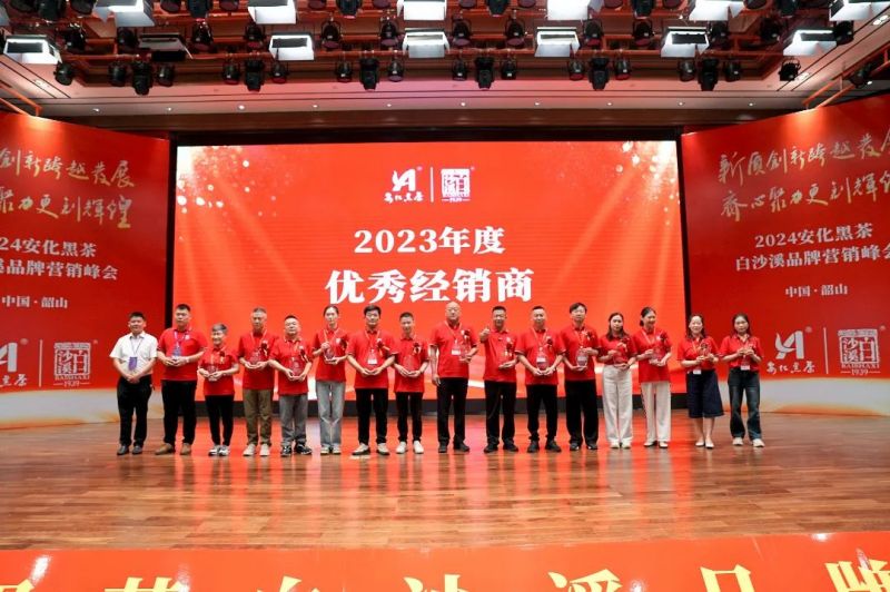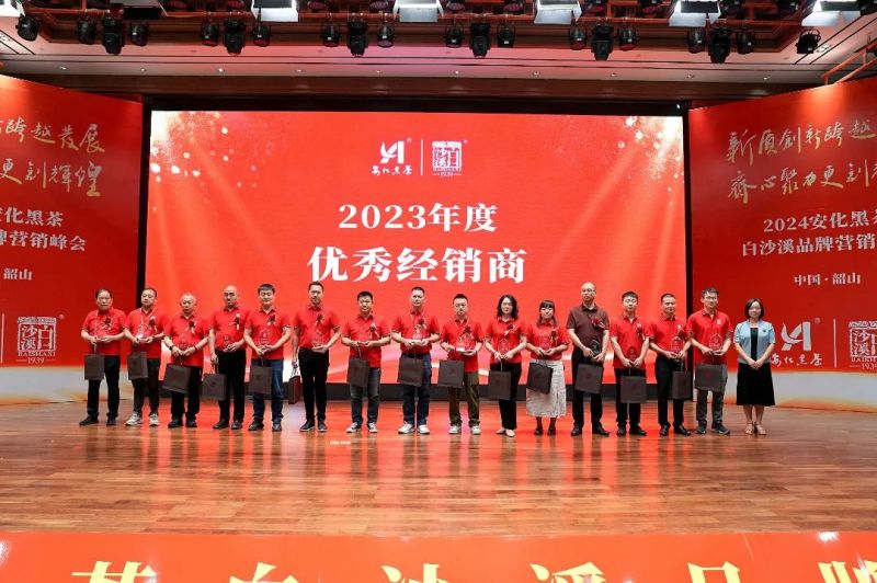 白沙溪副總經(jīng)理劉輝宣讀《白沙溪2023年度優(yōu)秀經(jīng)銷商表彰決定》,湖南將軍茯茶業(yè)有限公司、廣州市永利昌茶葉有限公司榮獲“2023年度戰(zhàn)略合作伙伴獎”;湖南省新茗星茶業(yè)有限公司、廣州演通貿(mào)易有限公司、青海省茶業(yè)有限公司榮獲“2023年度卓越營銷獎”;湖南伍愛創(chuàng)意文化科技有限公司、杭州白沙溪電子商務(wù)有限公司、湖南天胤貿(mào)易有限公司榮獲“2023年拓展創(chuàng)新獎”;湖南省嫩香靈茶業(yè)有限公司等30家單位榮獲“2023年度優(yōu)秀經(jīng)銷商”稱號。