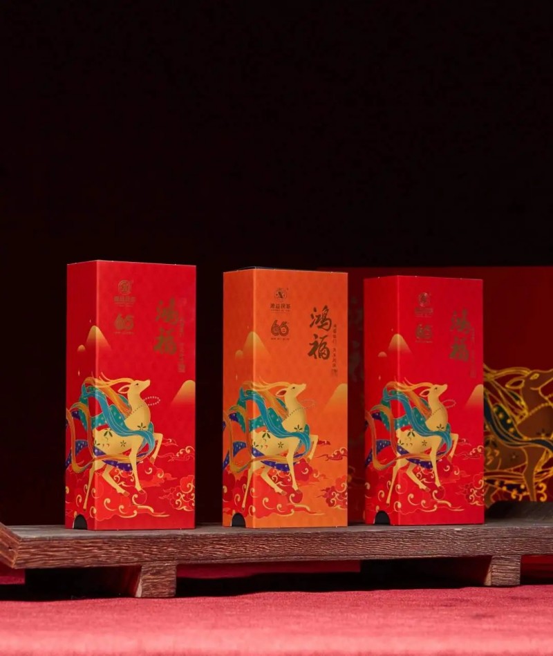 鴻福寓意祥瑞平安,福祿雙全。湘益茯茶精選雪峰山脈核心產(chǎn)區(qū)谷雨前后一級黑毛茶為原料,結(jié)合東方國潮元素,推出首款國風(fēng)茶禮【鴻?!浚尸F(xiàn)東方美學(xué),引領(lǐng)茶禮風(fēng)尚。