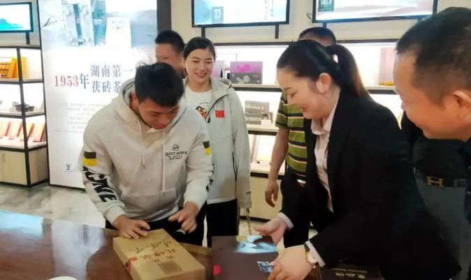 奧運(yùn)冠軍諶利軍在講解員的帶領(lǐng)下參觀了白沙溪黑茶文化博物館、了解安化黑茶名片白沙溪品牌故事文化。接著參觀了千兩茶晾曬場(chǎng)、沿江風(fēng)光帶、白沙溪文化長(zhǎng)廊、白沙溪古茶園、白沙溪茶碼頭。在千兩茶晾曬場(chǎng),興致地為白沙溪千兩茶簽名,隨后在黑茶體驗(yàn)中心進(jìn)行了簡(jiǎn)短的座談交流。