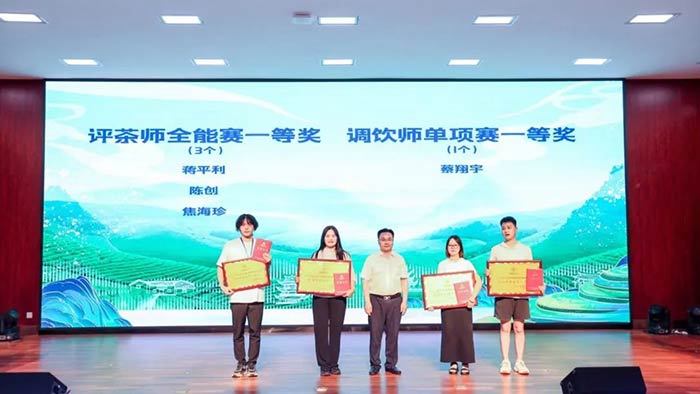 集團茶守藝蔡翔宇、毛俊分別獲得調(diào)飲師單項賽一等獎和二等獎。