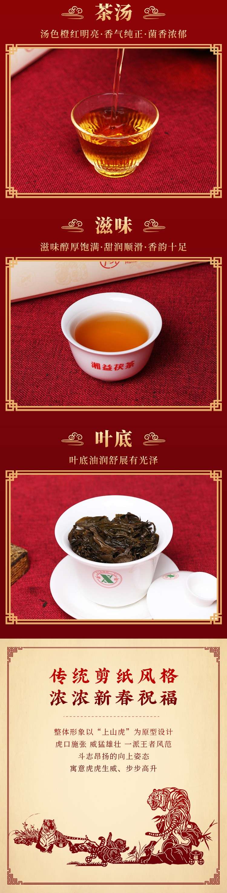 • 湘益獲茶湖南獲磚茶正宗安化黑茶2022新品虎年生肖茶瑞虎福2kg