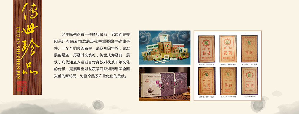 這里陳列的每一件經(jīng)典藏品,記錄的是益陽茶廠有限公司發(fā)展歷程重要的豐碑性事件,一個個響亮的名字,是歲月的年輪,是發(fā)展的足跡,歷經(jīng)時(shí)光洗禮,傳世成為經(jīng)典,展現(xiàn)了幾代湘益人通過言傳身教對茯茶千年文化的傳承,更展現(xiàn)出湘益茯茶開辟湖南黑茶全面興盛的新紀(jì)元,對整個黑茶產(chǎn)業(yè)做出的貢獻(xiàn)。